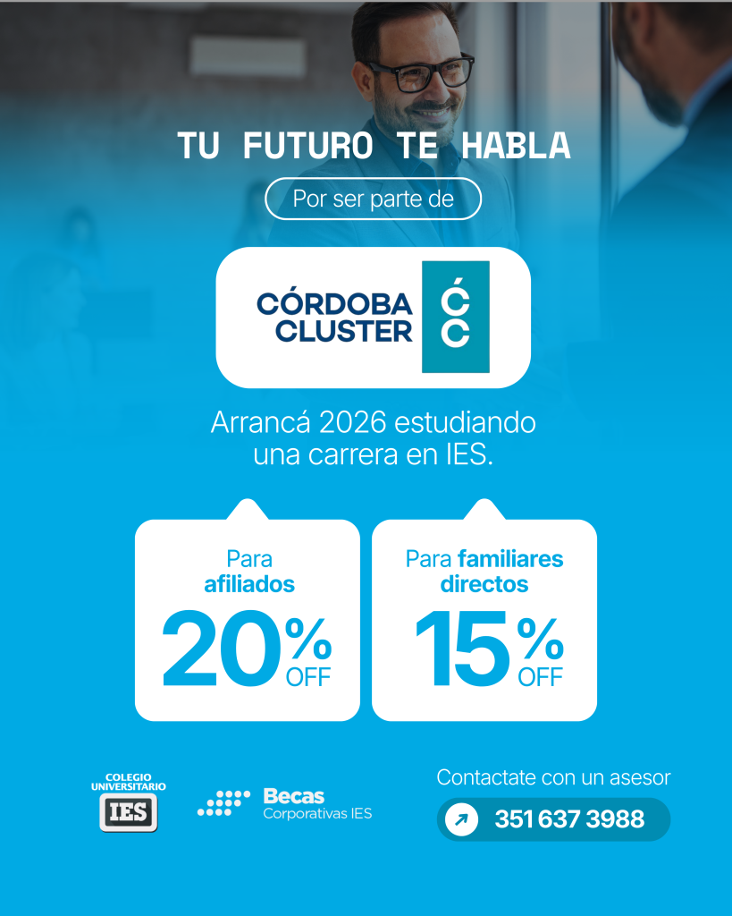 Los empleados/as de las empresas socias del Córdoba Cluster, tendrán un 20% de descuento en carreras, cursos y bachillerato a distancia del Colegio Universitario IES. Para los familiares directos de los empleados/as, tendrán un 15% de descuento para estudiar.